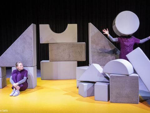 Van mij! is een speelse, beeldende en fysieke voorstelling met levensgrote, abstracte vormen vol mogelijkheden. Geïnspireerd op de peuterfase waarin het besef ontstaat dat iets ‘van mij’ kan zijn, maar dat de wereld ook groter is dan alleen maar die ‘van mij’.